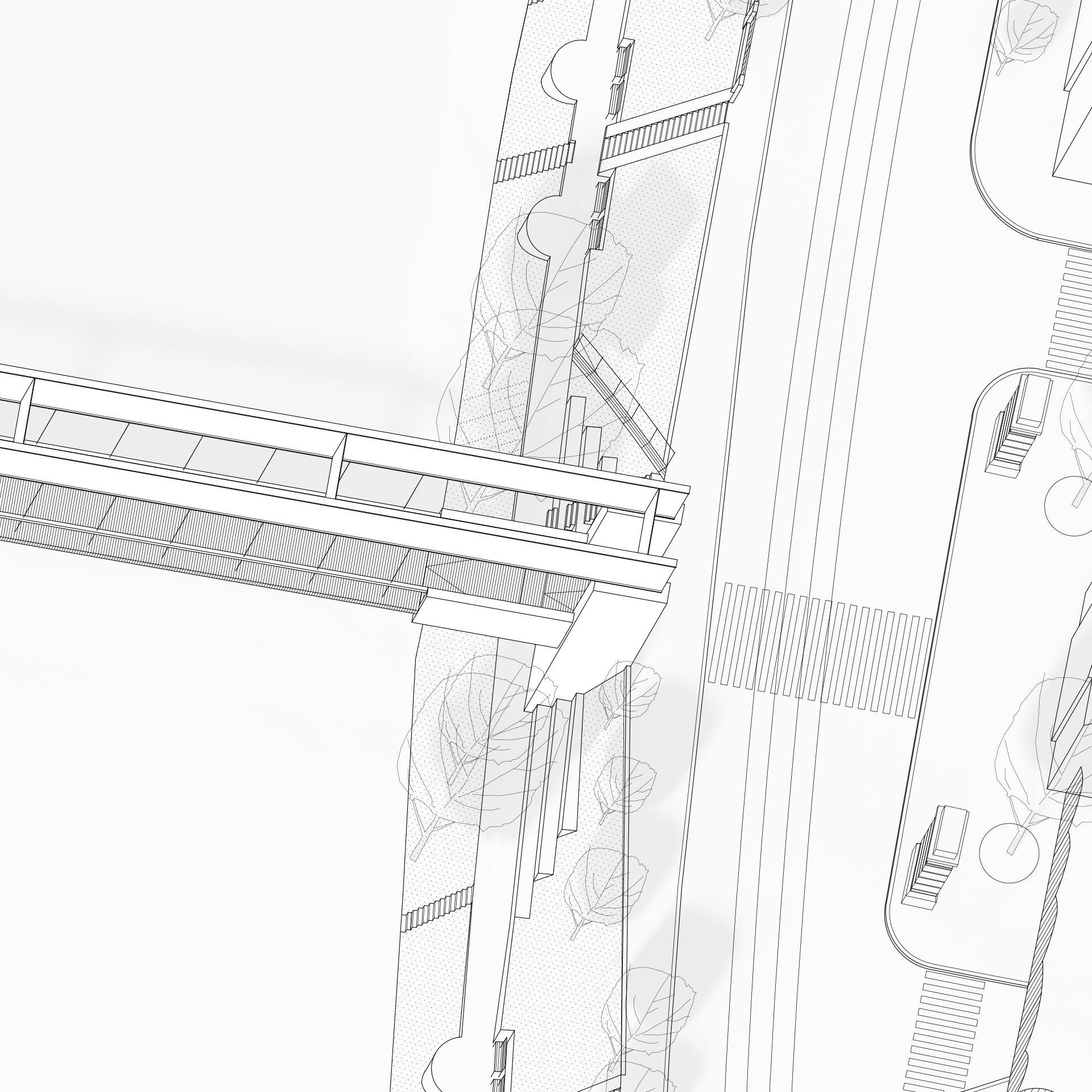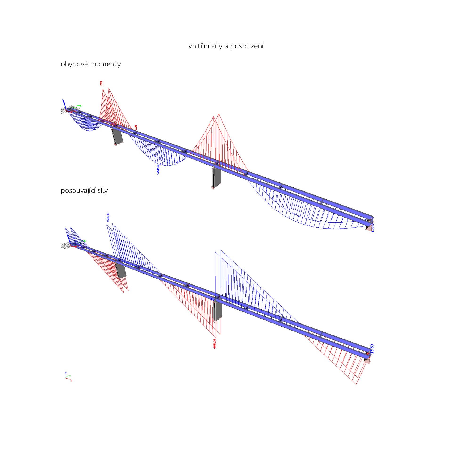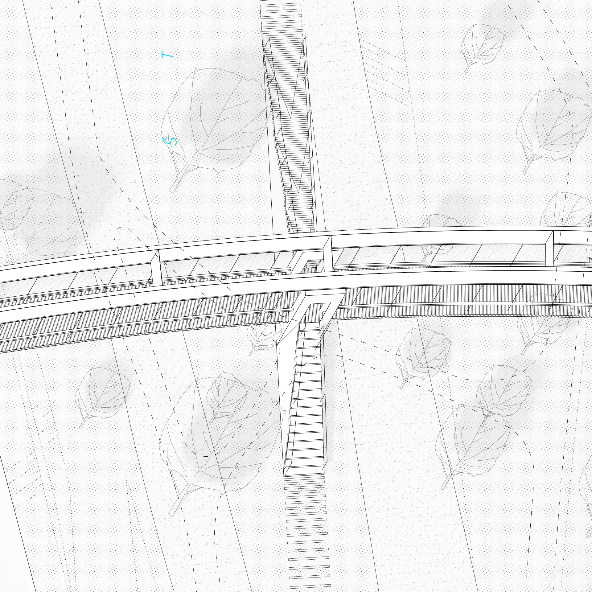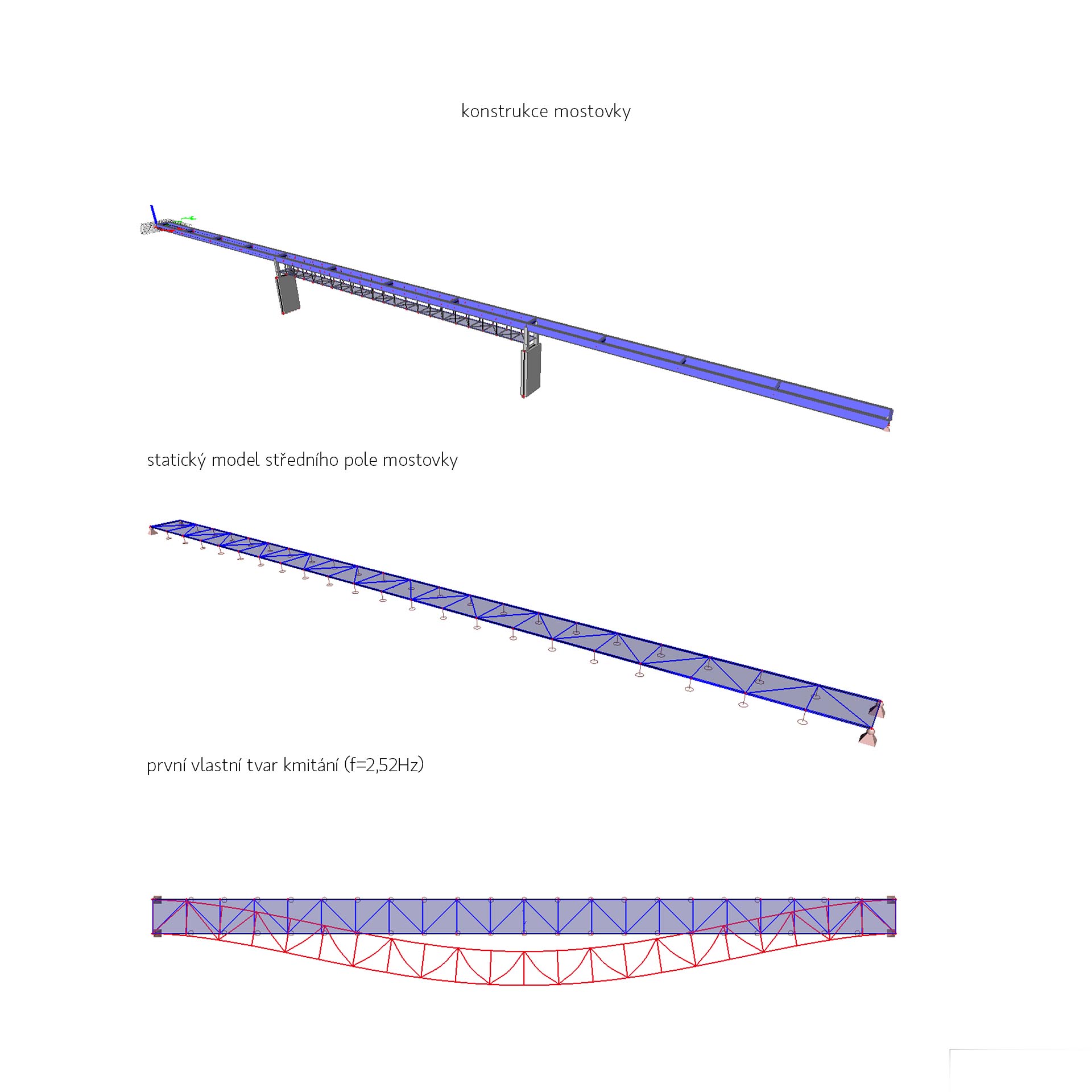 Předepsaná minimální světlá výška pro dolní plavební kanál a snaha o co nejjednodušší propojení obou břehů nás vede ke zvolení trámové konstrukce, na kterou je zavěšená konstrukce pochozí lávky. Toto řešení umožnuje jednoduché propojení, aniž by nosná konstrukce ovlivňovala průtok vody v případě povodně. Domníváme se, že přirozené řešení bez komplikovaných mimoúrovňových nástupů je nutný předpoklad pro vytvoření nové příjemné městské spojnice pro pohodlné každodenní využití. Vyústění rampy a schodiště na Štvanici navazuje na návrh řešení využití a rozvoje území ostrova.
