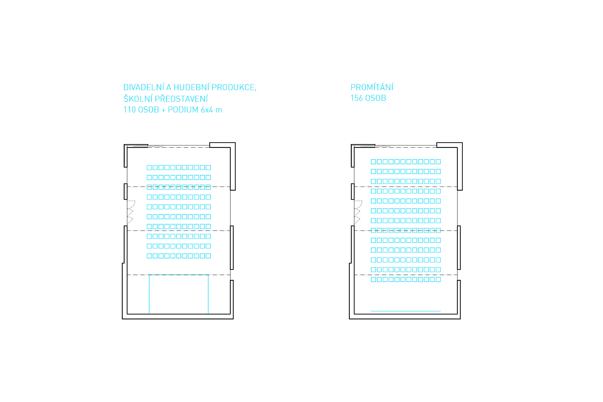 V prostoru sálu je pro zajištění akustické pohody navrhován podhled a obklad horní části stěn z dřevěných lamel lazurovaných do bílého odstínu, spodní část stěn sálu v kontaktu s návštěvníky je obložena bíle lakovanými akustickými deskami. Truhlářské konstrukce v domě jsou navrhovány s bílou polomatnou úpravou.