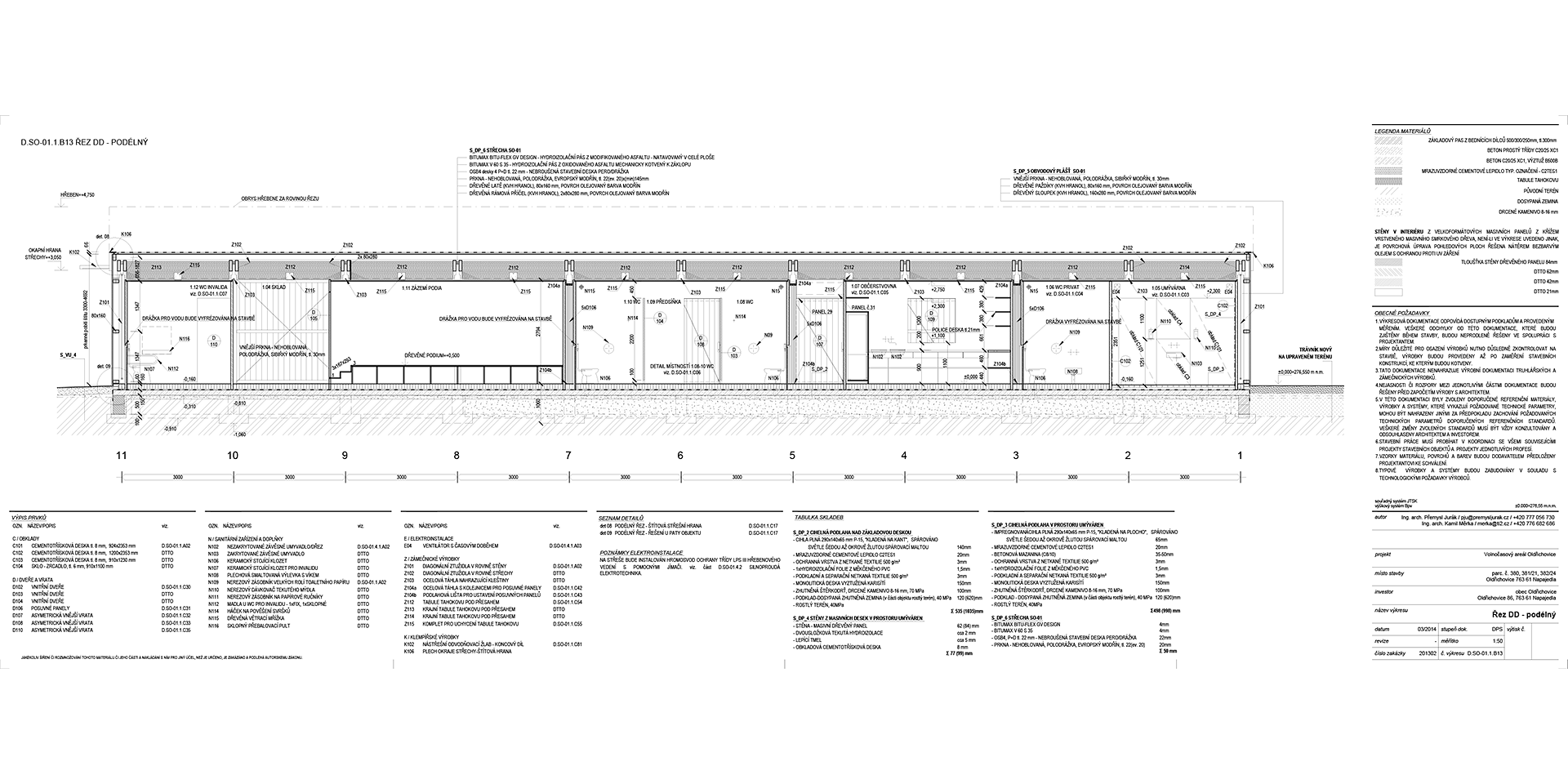 Vnitřní konstrukce pro sociální zařízení a technické zázemí budou provedeny z omítaných tenkých příčkovek. Sprchy a toalety budou přirozeně provětrávané větracími klapkami na fasádu objektu. Moduly s toaletami nemají plný strop, ale jsou uzavřeny deskou drátoskla, tím je zajištěno jejich prosvětlení.