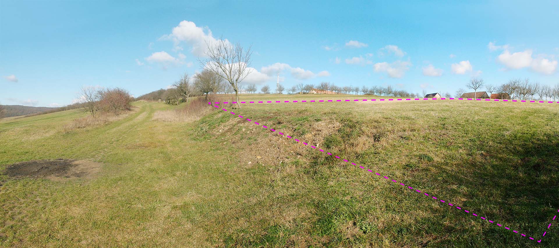 Na západní záhumenní cestu navazují ovocné sady ukončené polní cestou, která se na jihu napojuje na zpevněnou komunikaci lemovanou postupně vznikající novou výstavbou rodinných domů. Ulice klesá jihozápadním směrem a napojuje se v centru obce Hradčovice.