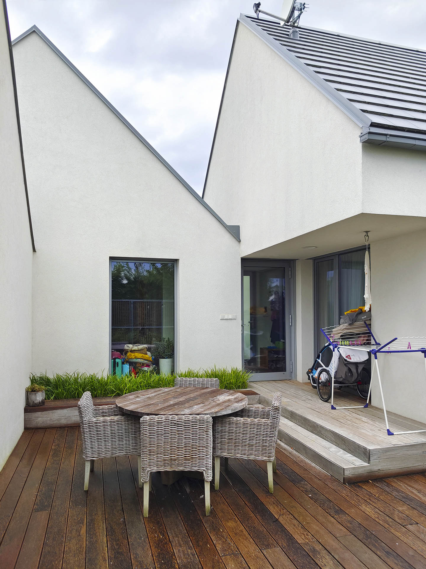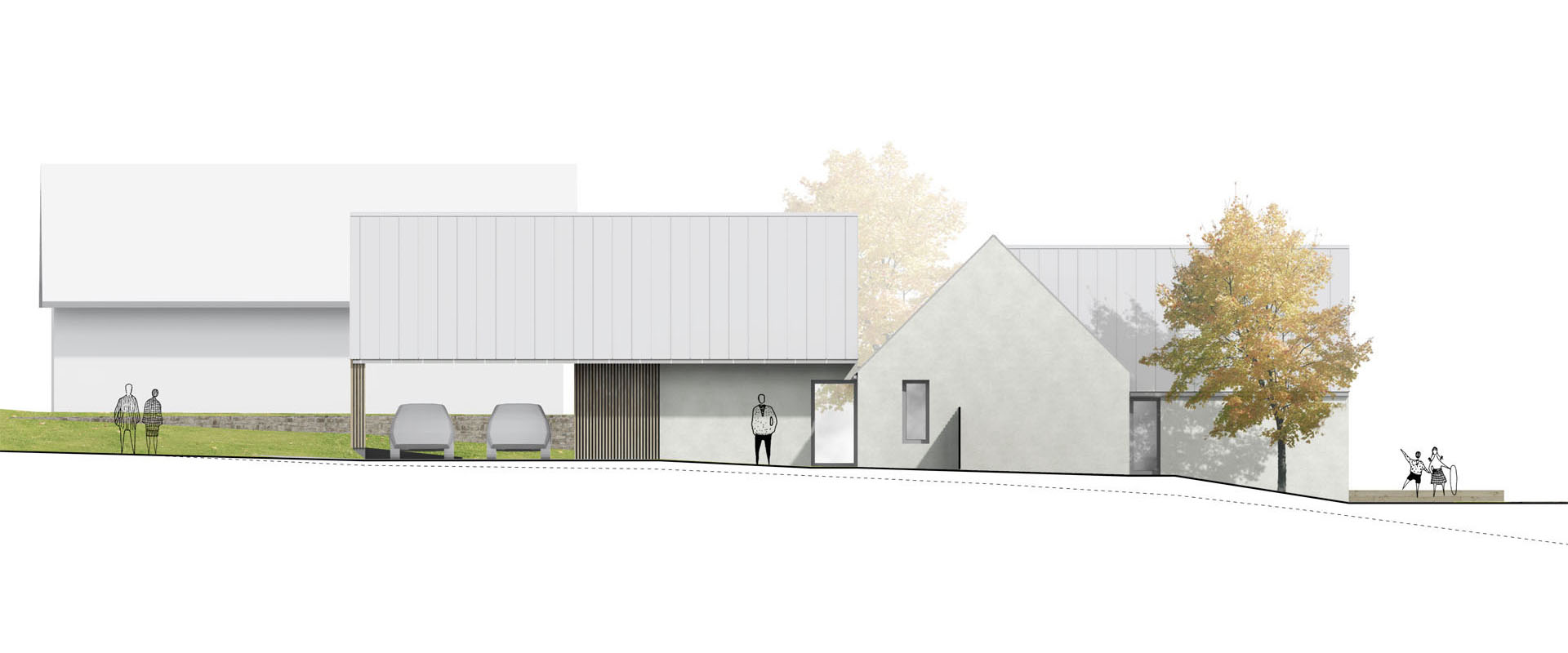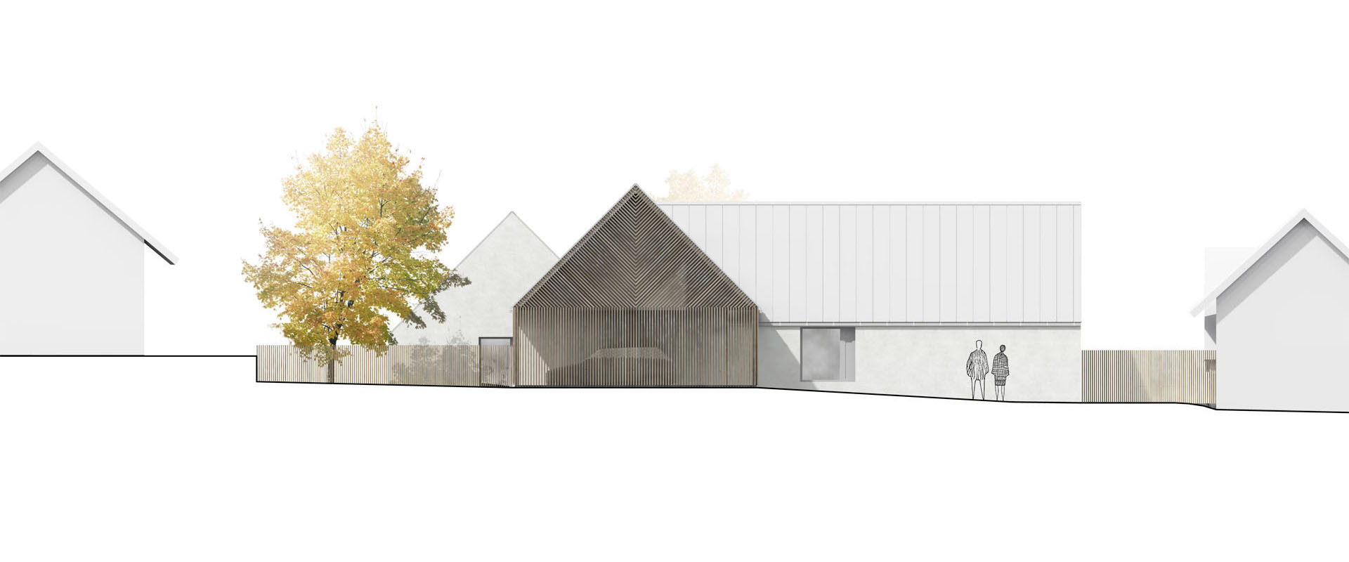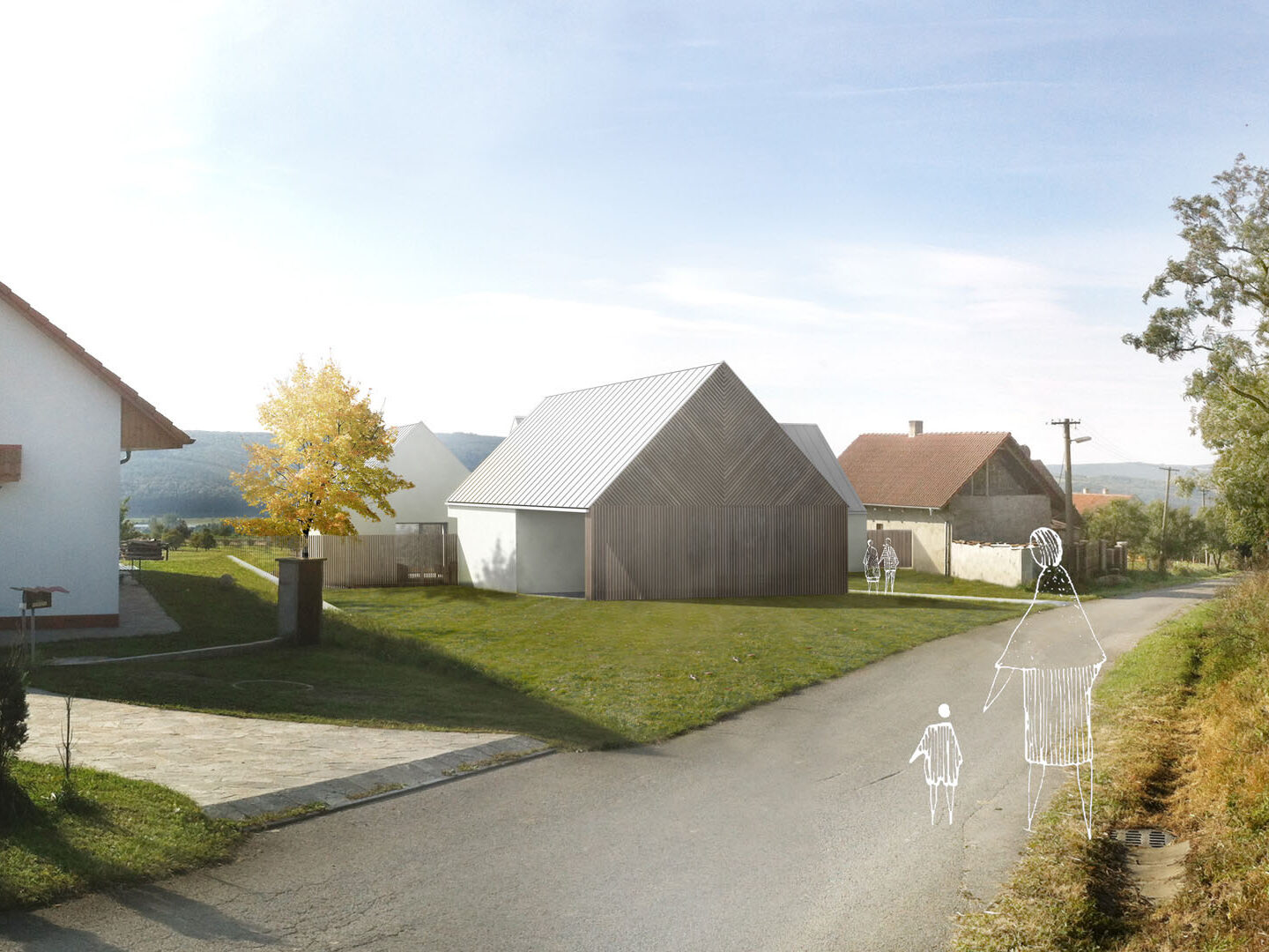 Dům navazuje na kontext obce, archetypálním tvarováním se odkazuje na kontinuitu vývoje místa.